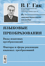 | Полное название книги | В. Г. Гак Языковые преобразования: Виды языковых преобразований. Факторы и сферы реализации языковых преобразований |