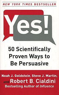 Often counterintuitive, the findings presented in Yes! will steer you away from common pitfalls while empowering you with little-known but proven wisdom. Whether you are in advertising, marketing, management, or sales, or just curious about how to be more influential in everyday life, Yes! shows how making small, scientifically proven changes to your approach can have a dramatic effect on your persuasive powers. Это и многое другое вы найдете в книге Yes! 50 Scientifically Proven Ways to Be Persuasive (Noah J. Goldstein, Steve J. Martin, Robert B. Cialdini)