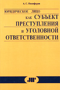 | Полное название книги | А. С. Никифоров Юридическое лицо, как субъект преступления и уголовной ответственности |