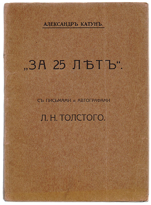 | Полное название книги | А. Катун За 25 лет. С письмами и автографами Л. Н. Толстого |