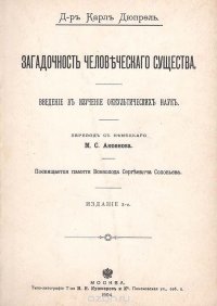 | Полное название книги | Карл Дюпрель Загадочность человеческого существа. Введение в изучение оккультных наук |