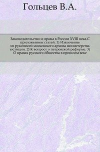 | Полное название книги | В. А. Гольцев Законодательство и нравы в России XVIII века |