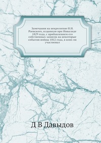 | Полное название книги | Д. В. Давыдов Замечания на некрологию Н.Н. Раевского, изданную при Инвалиде 1829 года, с прибавлением его собственных записок на некоторые события войны 1812 года, в коих он участвовал |