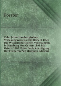 | Полное название книги | Forster Zehn Jahre Hamburgischen Vorlesungswesens: Ein Bericht Uber Die Wissenschaftlichen Vorlesungen in Hamburg Von Ostern 1895 Bis Ostern 1905 Unter Berucksichtigung Der Fruheren Zeit (German Edit |