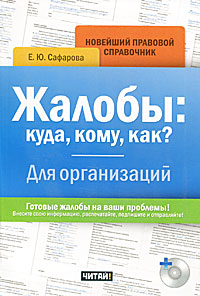 | Полное название книги | Е. Ю. Сафарова Жалобы. Куда, кому, как? Для организаций (+ CD) |