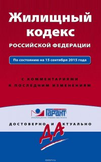 | Полное название книги | Коллектив авторов Жилищный кодекс Российской Федерации. По состоянию на 15 сентября 2015 года. С комментариями к последним изменениям |