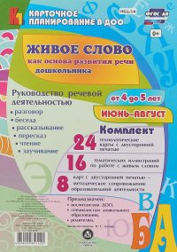 | Полное название книги | И. С. Батова Живое слово как основа развития речи дошкольника. Руководство речевой деятельностью. Средняя группа (от 4 до 5 лет). Июнь-август (набор из 48 карточек) |