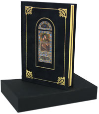 Бархатный переплет с тиснением золотой фольгой и приклейкой с изображением витража. Бинтовой корешок с тиснением золотой фольгой. Обрез золотой. Форзацы бумажные цветные с рисунком под мрамор. Множество цветных иллюстраций на вклейках. Ляссе. Книга вложена в черный тканевый футляр. Тираж ограничен. Каждый экземпляр пронумерован.