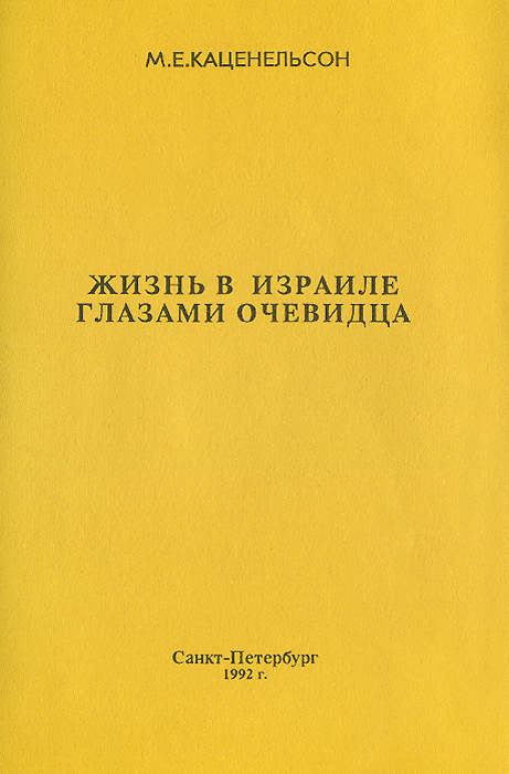| Полное название книги | М. Е. Каценельсон Жизнь в Израиле глазами очевидца |