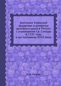 | Полное название книги | Н. И. Петров Значение Киевской академии в развитии духовных школ в России с учреждения Св. Синода в 1721 году и до половины XVIII века |