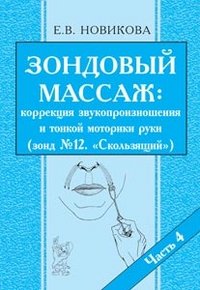 | Полное название книги | Е. В. Новикова Зондовый массаж. Ч. 4. Коррекция звукопроизношения и тонкой моторики руки. Зонд №12 Скользящий. Наглядно-практическое пособие. А5 |