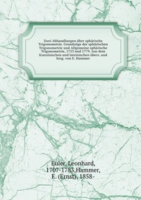 | Полное название книги | Leonhard Euler Zwei Abhandlungen uber spharische Trigonometrie. Grundzuge der spharischen Trigonometrie und Allgemeine spharische Trigonometrie, 1753 und 1779. Aus dem franzosischen und lateinischen ubers. |