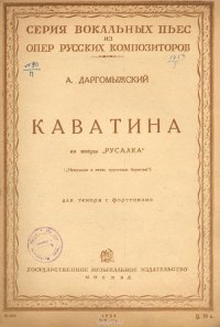 | Полное название книги | А. Даргомыжский А. Даргомыжский. Каватина. Из оперы "Русалка". Для тенора с фортепиано |