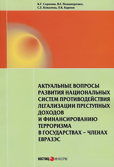 | Полное название книги | С. Е. Ковалева, К. Г. Сорокин, В. Е. Понаморенко, Л. К. Карпов Актуальные вопросы развития национальных систем противодействия легализации преступных доходов и финансированию терроризма в государствах - членах ЕврАзЭС |