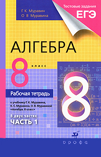 | Полное название книги | Г. К. Муравин, О. В. Муравина Алгебра. 8 класс. Рабочая тетрадь. В 2 частях. Часть 1 |
