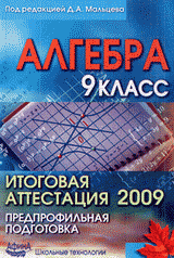 | Полное название книги | ред., Д. А. Мальцев Алгебра. 9 класс. Итоговая аттестация - 2009. Предпрофильная подготовка: учебно-методическое пособие |
