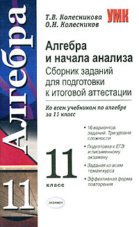 | Полное название книги | Т. В. Колесникова, О. Н. Колесников Алгебра и начала анализа. Сборник заданий для подготовки к итоговой аттестации. 11 класс |