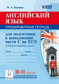 | Полное название книги | М. А. Бодоньи Английский язык. 10-11 классы. Тренировочная тетрадь для подготовки к выполнению части С на ЕГЭ. Учебное пособие |