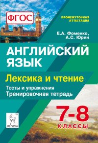 | Полное название книги | Е. А. Фоменко, А. С. Юрин Английский язык. 7-8 класс. Лексика и чтение. Тренировочная тетрадь. Тесты и упражнения |
