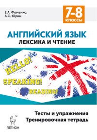 | Полное название книги | Е. А. Фоменко, А. С. Юрин Английский язык. 7-8 классы. Лексика и чтение. Тесты и упражнения. Тренировочная тетрадь |