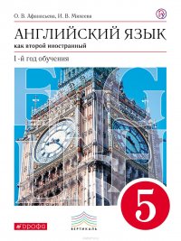 | Полное название книги | Афанасьева Ольга Васильевна, Михеева Ирина Владимировна Английский язык как второй иностранный. 1-й год обучения. 5 класс. Учебник |