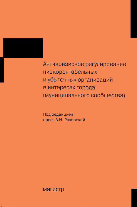 | Полное название книги | С. Е. Кован, Е. В. Арсенова, А. Н. Ряховская, О. Г. Крюкова Антикризисное регулирование низкорентабельных и убыточных организаций в интересах города (муниципального сообщества) |