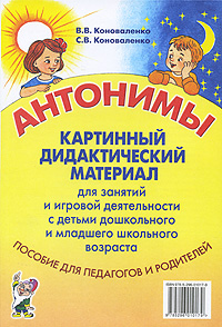 | Полное название книги | С. В. Коноваленко, В. В. Коноваленко Антонимы. Картинный дидактический материал для занятий и игровой деятельности с детьми старшего дошкольного и младшего школьного возраста |