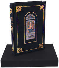 Бархатный переплет с тиснением золотой фольгой и приклейкой с изображением витража. Бинтовой корешок с тиснением золотой фольгой. Обрез золотой. Форзацы бумажные цветные с рисунком под мрамор. Множество цветных иллюстраций на вклейках. Ляссе. Книга вложена в черный тканевый футляр. Тираж ограничен. Каждый экземпляр пронумерован.