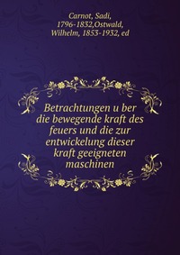 Betrachtungen u?ber die bewegende kraft des feuers und die zur entwickelung dieser kraft geeigneten maschinen. Воспроизведено в оригинальной авторской орфографии издания 1892 года (издательство "Leipzig, W. Engelmann"). Это и многое другое вы найдете в книге Betrachtungen u?ber die bewegende kraft des feuers und die zur entwickelung dieser kraft geeigneten maschinen (Sadi Carnot)