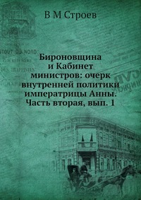 | Полное название книги | В. М. Строев Бироновщина и Кабинет министров: очерк внутренней политики императрицы Анны. Часть вторая, вып. 1 |
