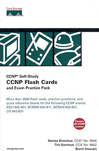 As a final preparation tool for the four CCNP exams, this product complements official Cisco curriculum, other books, and other exam preparatory material. It marries three uniquely successful and complementary methods of late-stage test preparation. The Pack contains a testing engine with more than 800 questions, including simulation based questions. The flash cards come in a printed format, and can also be downloaded to PC, Windows Pocket PC, and PalmOS via the included CD-ROM for ultimate portability. Fact-filled Study Sheets allow readers to review important exam topics, organized by exam. Это и многое другое вы найдете в книге CCNP Flash Cards and Exam Practice Pack (+ CD-ROM) (Denise Donohue, Tim Sammut, Brent Stewart)
