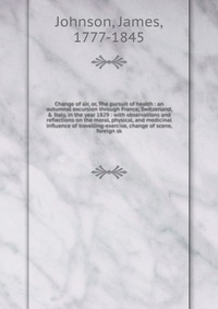 Change of air, or, The pursuit of health. An autumnal excursion through France, Switzerland, & Italy, in the year 1829. With observations and reflections on the moral, physical, and medicinal influence of travelling-exercise, change of scene, foreign sk. Воспроизведено в оригинальной авторской орфографии издания 1831 года (издательство "London : S. Highley"). Это и многое другое вы найдете в книге Change of air (James Johnson)