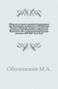 | Полное название книги | Коллектив авторов Чтения в Обществе истории и древностей российских при Московском университете. Заседание 31 мая 1847г |