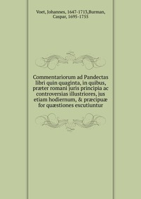 | Полное название книги | Johannes Voet Commentariorum ad Pandectas libri quin quaginta, in quibus, praeter romani juris principia ac controversias illustriores, jus etiam hodiernum, & praecipuae for quaestiones excutiuntur |