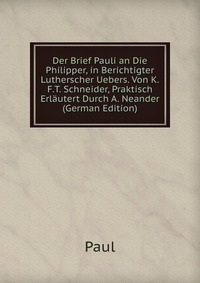 | Полное название книги | Paul Der Brief Pauli an Die Philipper, in Berichtigter Lutherscher Uebers. Von K.F.T. Schneider, Praktisch Erlautert Durch A. Neander (German Edition) |