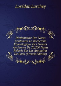| Полное название книги | Loredan Larchey Dictionnaire Des Noms Contenant La Recherche Etymologique Des Formes Anciennes De 20,200 Noms Releves Sur Les Annuaires De Paris (French Edition) |