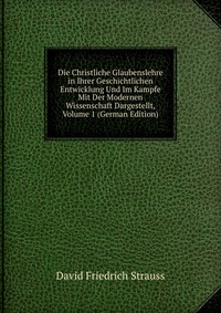 | Полное название книги | David Friedrich Strauss Die Christliche Glaubenslehre in Ihrer Geschichtlichen Entwicklung Und Im Kampfe Mit Der Modernen Wissenschaft Dargestellt, Volume 1 (German Edition) |