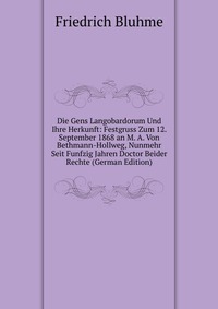 | Название транслитом | die-gens-langobardorum-und-ihre-herkunft-festgruss-zum-12-september-1868-an-m-a-von-bethmann-hollweg-nunmehr-seit-funfzig-jahren-doctor-beider-rechte-german-edition-friedrich-bluhme |