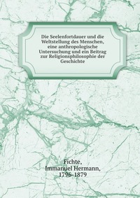 | Полное название книги | Immanuel Hermann Fichte Die Seelenfortdauer und die Weltstellung des Menschen, eine anthropologische Untersuchung und ein Beitrag zur Religionsphilosophie der Geschichte |