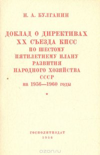 | Полное название книги | Н. А. Булганин Доклад о директивах XX съезда КПСС по шестому пятилетнему плану развития народного хозяйства СССР на 1956-1960 годы |