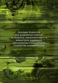 | Полное название книги | Коллектив авторов Доклады Комиссии для разработки ответов на вопросы, предложенные г-м министром народного просвещения относительно устройства университетов |