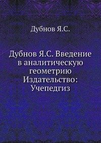 | Полное название книги | Я. С. Дубнов Дубнов Я.С. Введение в аналитическую геометрию Издательство: Учепедгиз |