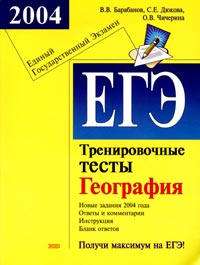 | Полное название книги | С. Е. Дюкова, О. В. Чичерина, В. В. Барабанов ЕГЭ 2004. География. Тренировочные тесты |