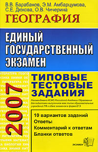 | Полное название книги | Э. М. Амбарцумова, С. Е. Дюкова, О. В. Чичерина, В. В. Барабанов ЕГЭ 2007. География. Типовые тестовые задания |