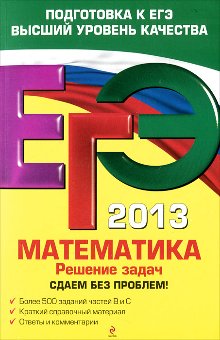 Книга окажет помощь учителям при организации систематической подготовки учащихся к сдаче ЕГЭ по математике. Это и многое другое вы найдете в книге ЕГЭ 2013. Математика. Решение задач. Сдаем без проблем! (А. Р. Рязановский, В. В. Мирошин)