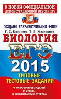 | Полное название книги | Г. С. Калинов, Т. В. Мазяркина ЕГЭ 2015. Биология. Типовые тестовые задания |