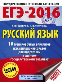 | Полное название книги | И. В. Текучева, А. Ю. Бисеров ЕГЭ-2016. Русский язык (60х84/8) 10 тренировочных вариантов экзаменационных работ для подготовки к ЕГЭ |