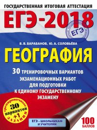 | Полное название книги | Ю. А. Соловьева, В. В. Барабанов ЕГЭ-2018. География. 30 тренировочных вариантов экзаменационных работ для подготовки к единому государственному экзамену |