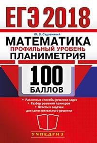 | Полное название книги | Ю. В. Садовничий ЕГЭ 2018. Математика. 100 баллов. Профильный уровень. Планиметрия |