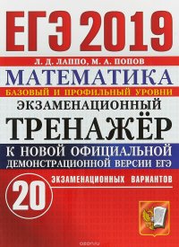 | Полное название книги | Л. Д. Лаппо, М. А. Попов ЕГЭ 2019. Математика. Экзаменационный тренажер. 20 экзаменационных вариантов. Базовый и профильный уровни |